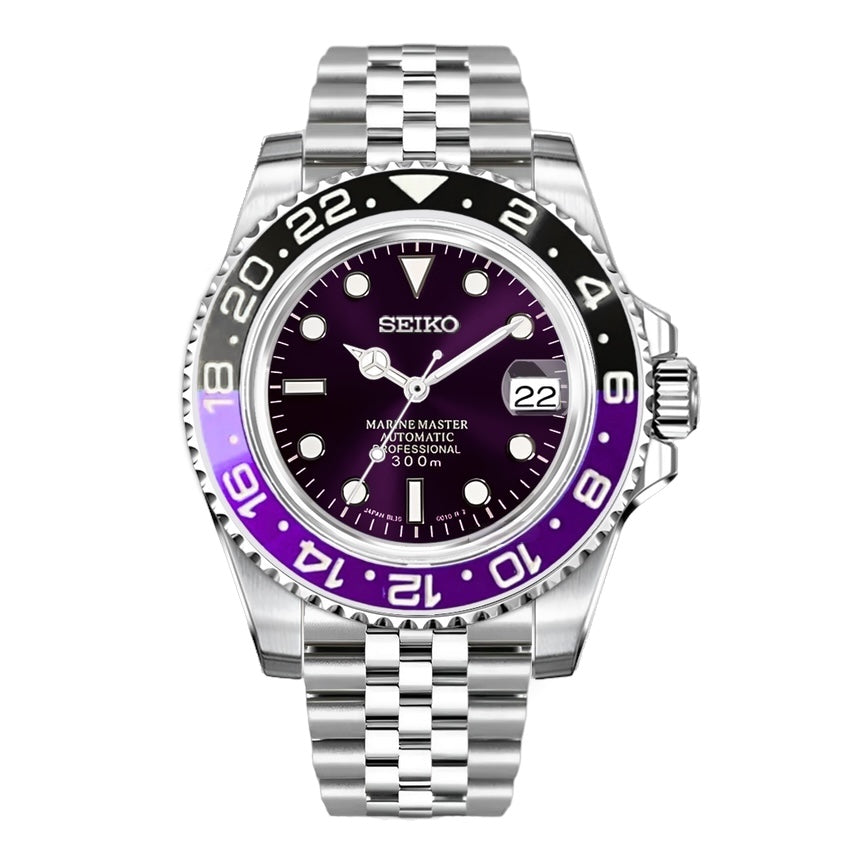 Retrouve la marine master Jok et au design iconique avec sa lunette bicolore, performance japonaise. Un hommage à la plongée, pensé pour le quotidien