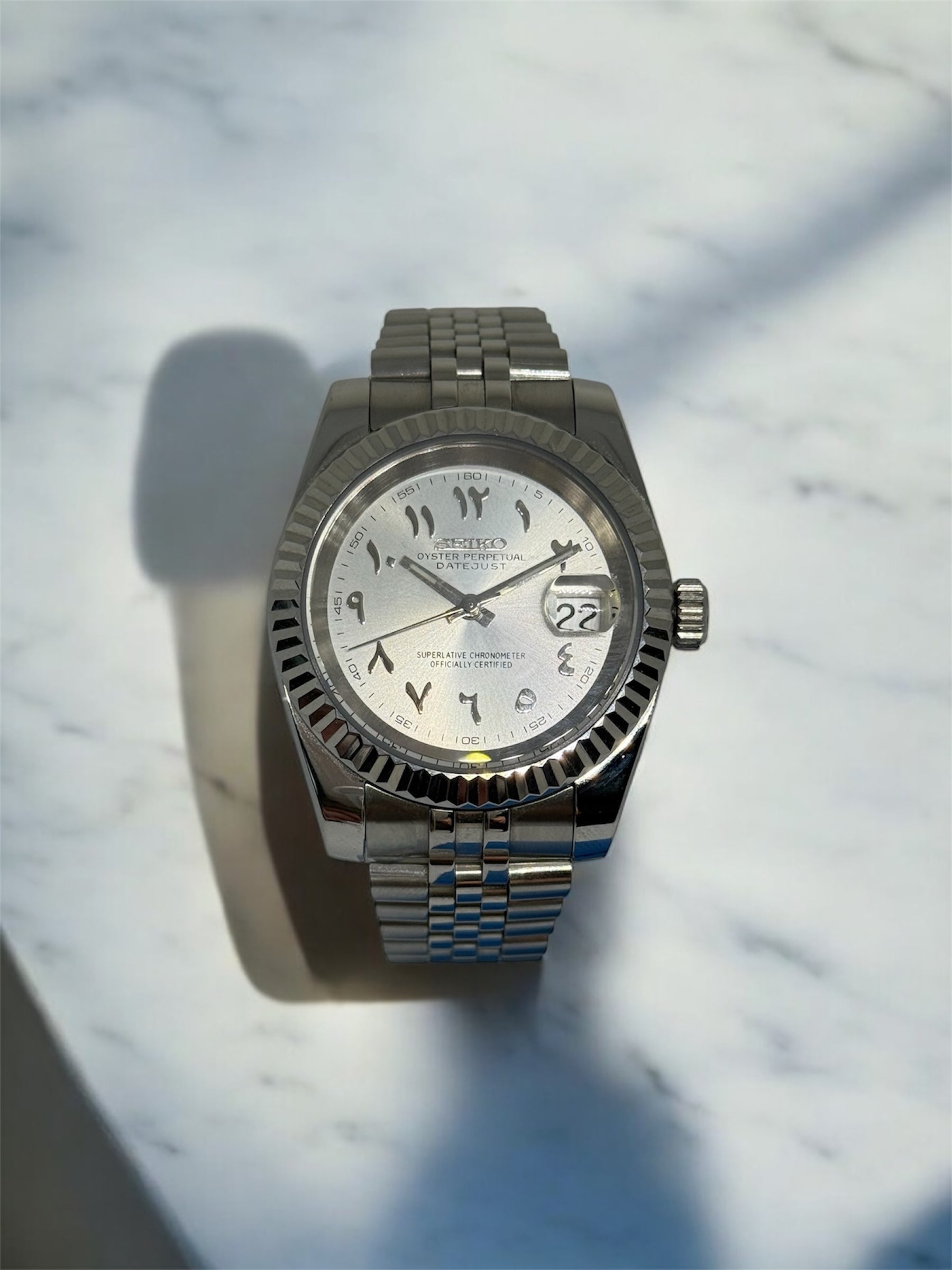 Élégance intemporelle et caractère affirmé : notre Seiko Mod Arabic Dial séduit par son cadran aux chiffres arabes, symbole de distinction et d’originalité.